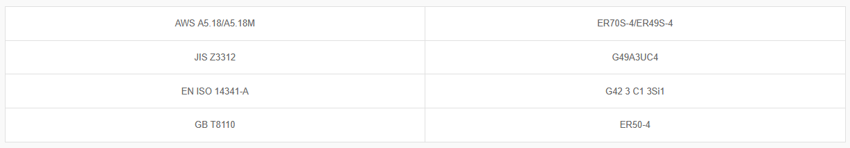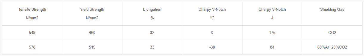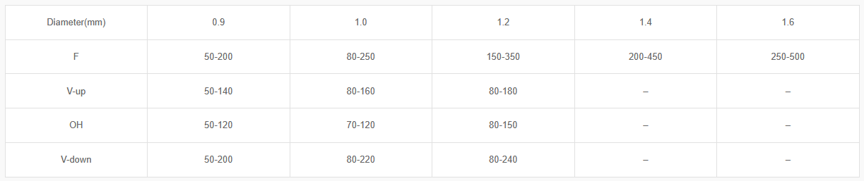 • The shielding gases include Ar/CO2 blends. All Positions electrode or single pass welding with high speed.
