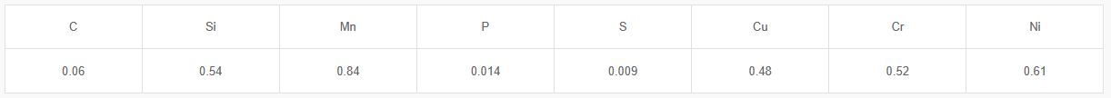 - Weld metal has great weather resistance due to Cu, Ni and Cr contents