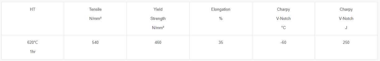 - Weld metal contains Ni-Mo and provides good impact properties at -60°C