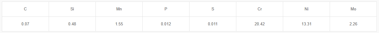 - Weld metal is austenitic structure with 19%Cr-12%Ni-3%Mo