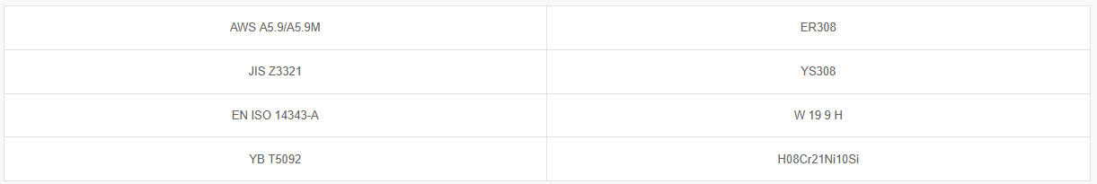 - It is suitable for welding 18% Cr-8% Ni stainless steels such as AISI 304, 301, 302, and 308