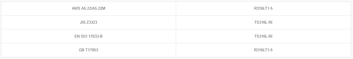 - Suitable for welding 18%Cr-12%Ni-2%Mo steel (AISI 316, AISI316L)