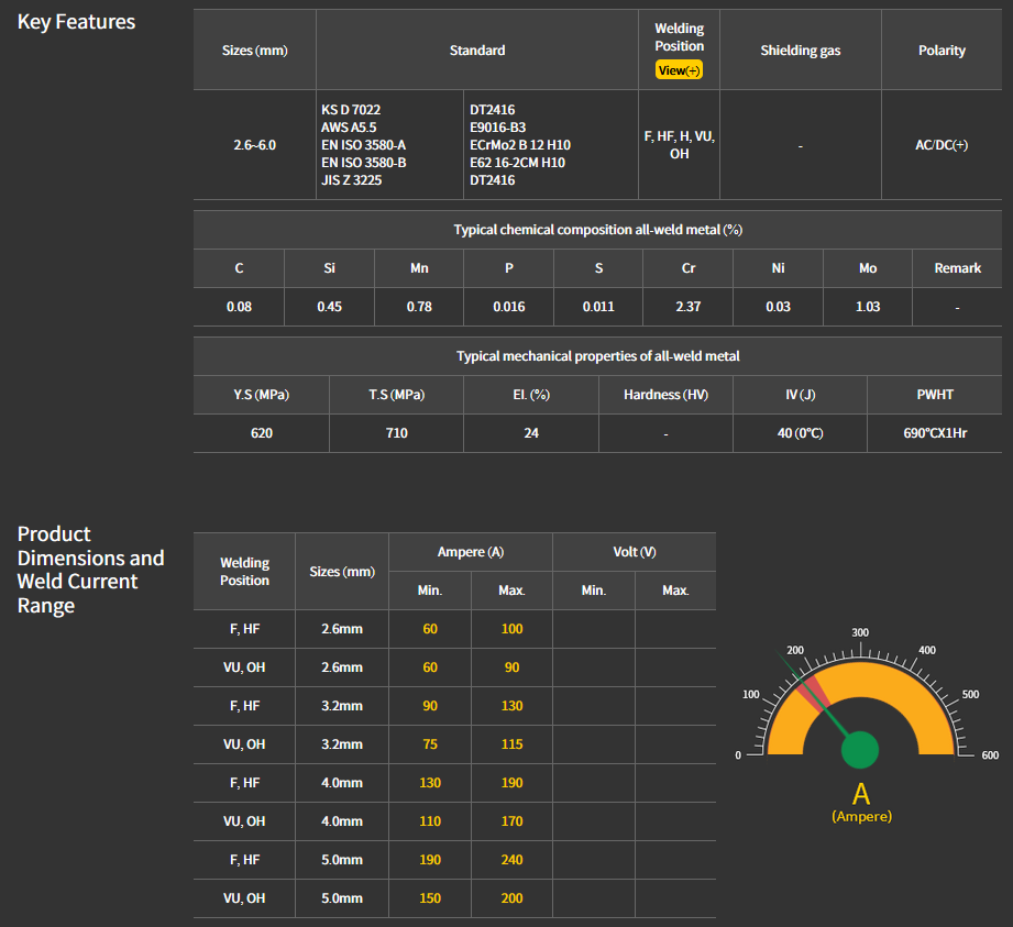 - EN: ISO 3580-A : ECrMo2 B 12 H10