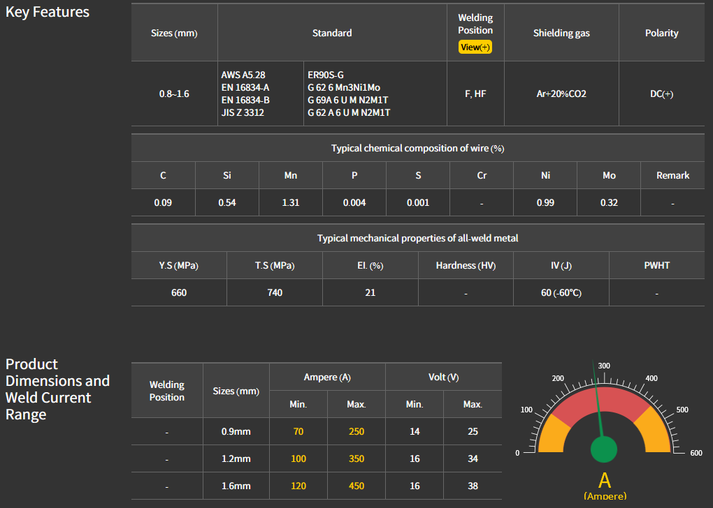 - EN: 16834-A : G 62 6 Mn3Ni1Mo