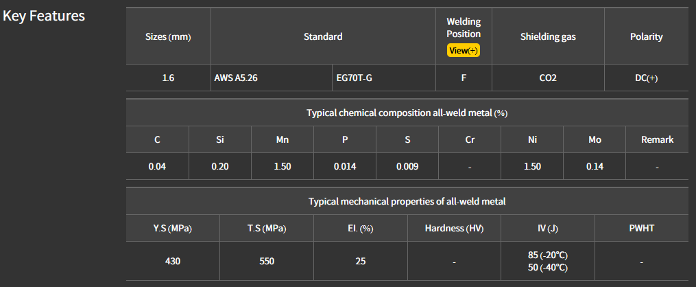 For tandem type of electro gas welding(For face part)Excellent low temperture toughness at high input (600~650KJ/㎝)