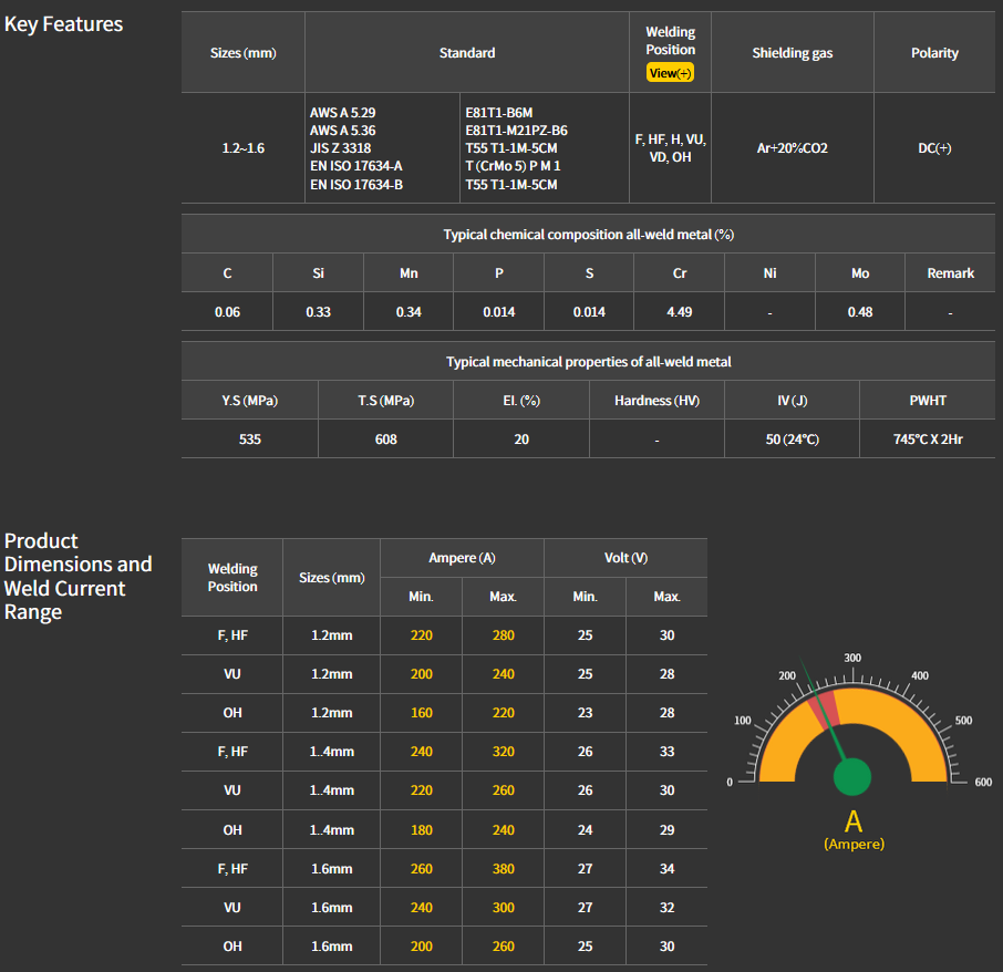 - EN: ISO 17634-A : T (CrMo 5) P M 1