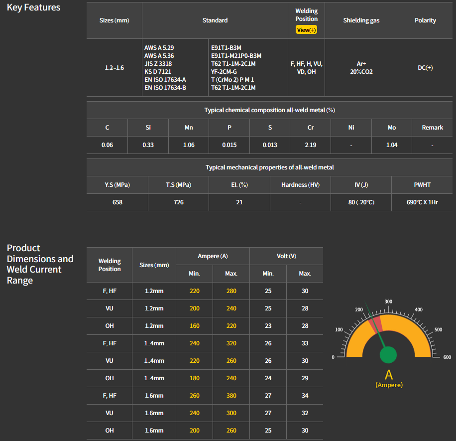 - EN: ISO 17634-A : T (CrMo 2) P M 1