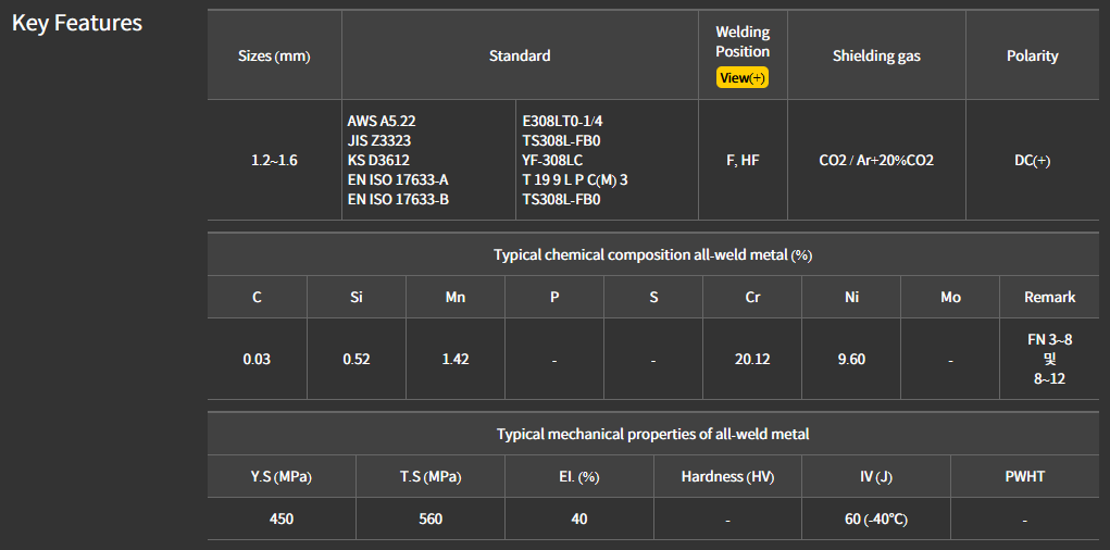 - EN: ISO 17633-B : TS308L-FB0