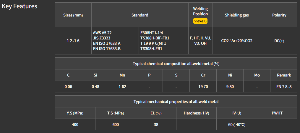 EN: ISO 17633-A : T 19 9 P C(M) 1