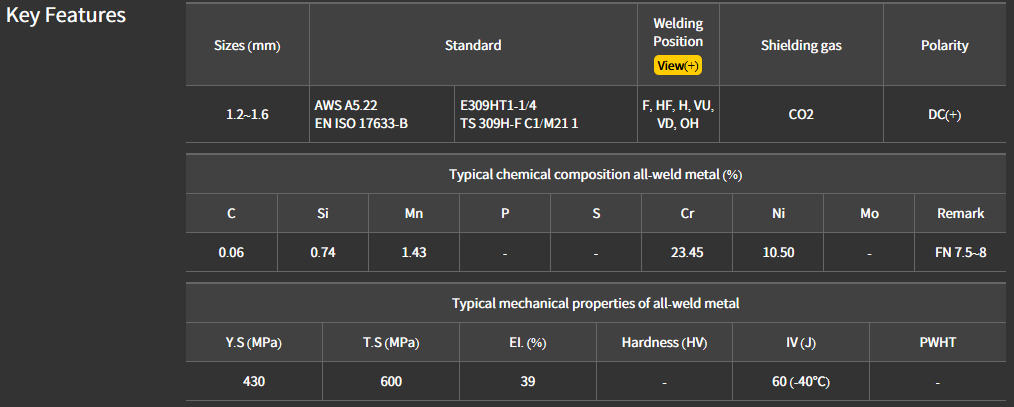 EN: ISO 17633-B : TS 309H-F C1/M21 1