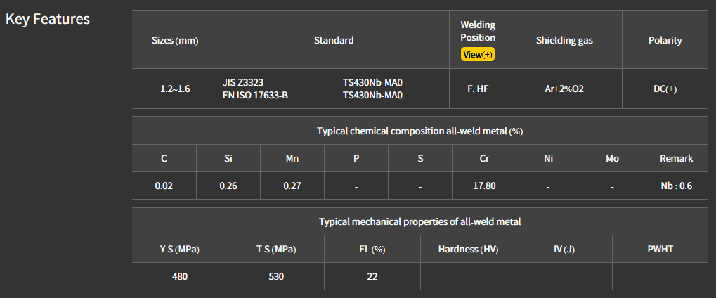 Welding of 18%Cr Ferritic STS wigh automotive exhaust fabrications such as front pipe, bellows, flange etc(AISI 430, 430Ti, 431)