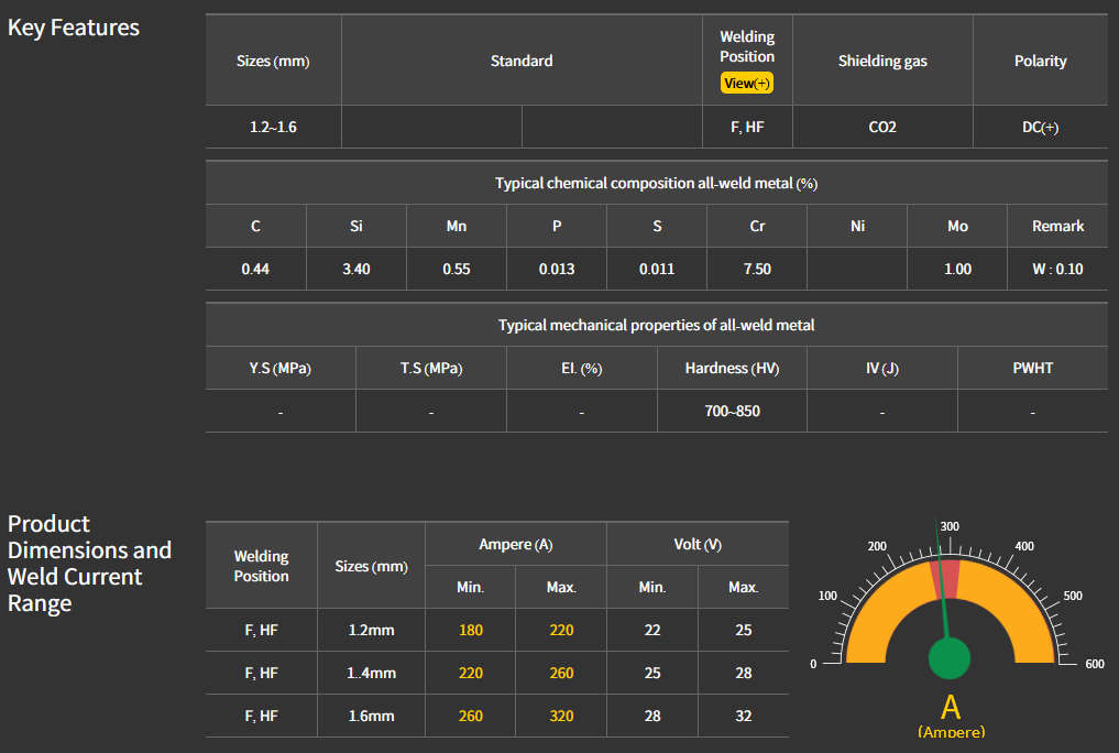 Hardfacing for wear plate and weld metal's hardness should be about Hv 700~850