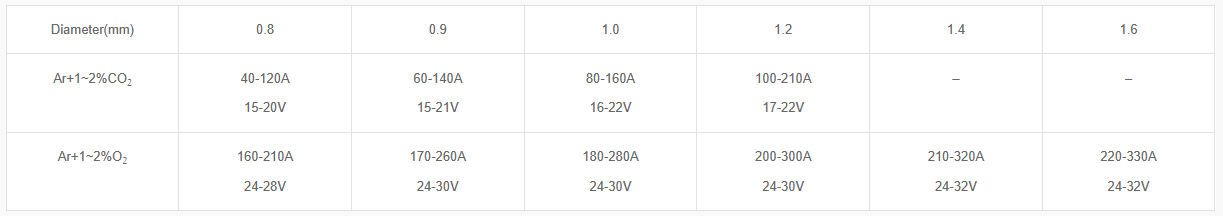 - Use Ar+1~2%O2 for spray transfer and Ar+1~2%CO2 for short-circuit transfer.