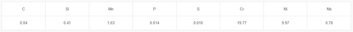 - The weld metal has an austenitic structure containing 19.5% Cr, 10% Ni, and Nb