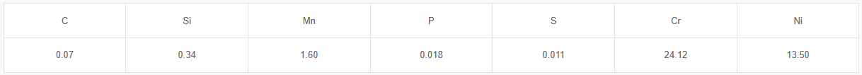 - The weld metal has an austenitic structure containing 23.5% Cr and 13% Ni