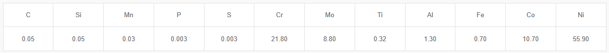 KMS-617 is 53%Ni-23%Cr-12%Co-9%Mo-1%Fe alloy. Excellent mechanical properties at high temperature, oxidization and corrosion resistance